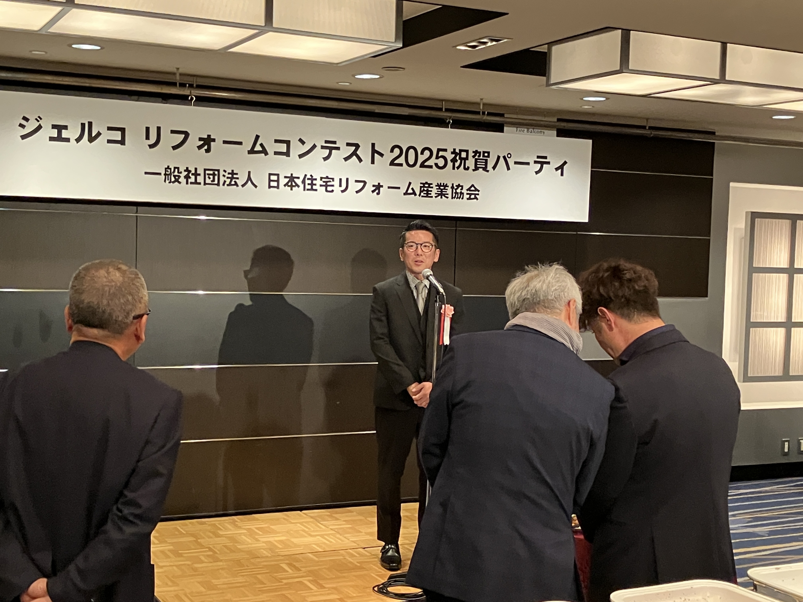 懇親パーティでは公益財団法人 住宅リフォーム・紛争処理支援センター、理事長の淡野博久様よりご挨拶をいただきました。